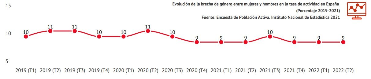 L'atur s'ha situat en aquest any en els mínims històrics a Espanya. Mai s'havia registrat una taxa d'ocupació tan alta per als ciutadans espanyols. Tot i això, la bretxa de gènere pel que fa a la taxa d'activitat segueix sense baixar del 9% dels darrers mesos. El que és més preocupant, és que no hi ha una gran variació en aquesta taxa entre homes i dones tot i que hagi augmentat la quantitat de persones afiliades a la Seguretat Social. D'aquesta forma, en els últims quatre anys aquesta taxa sempre s'ha mogut entre l'11 i el 9% segons les dades de l'Enquesta de Població Activa de l'Institut Nacional d'Estadística. També s'ha de tindre en compte que hi ha moltes dones que fan tasques no remunerades o que desenvolupen activitat sense contracte.